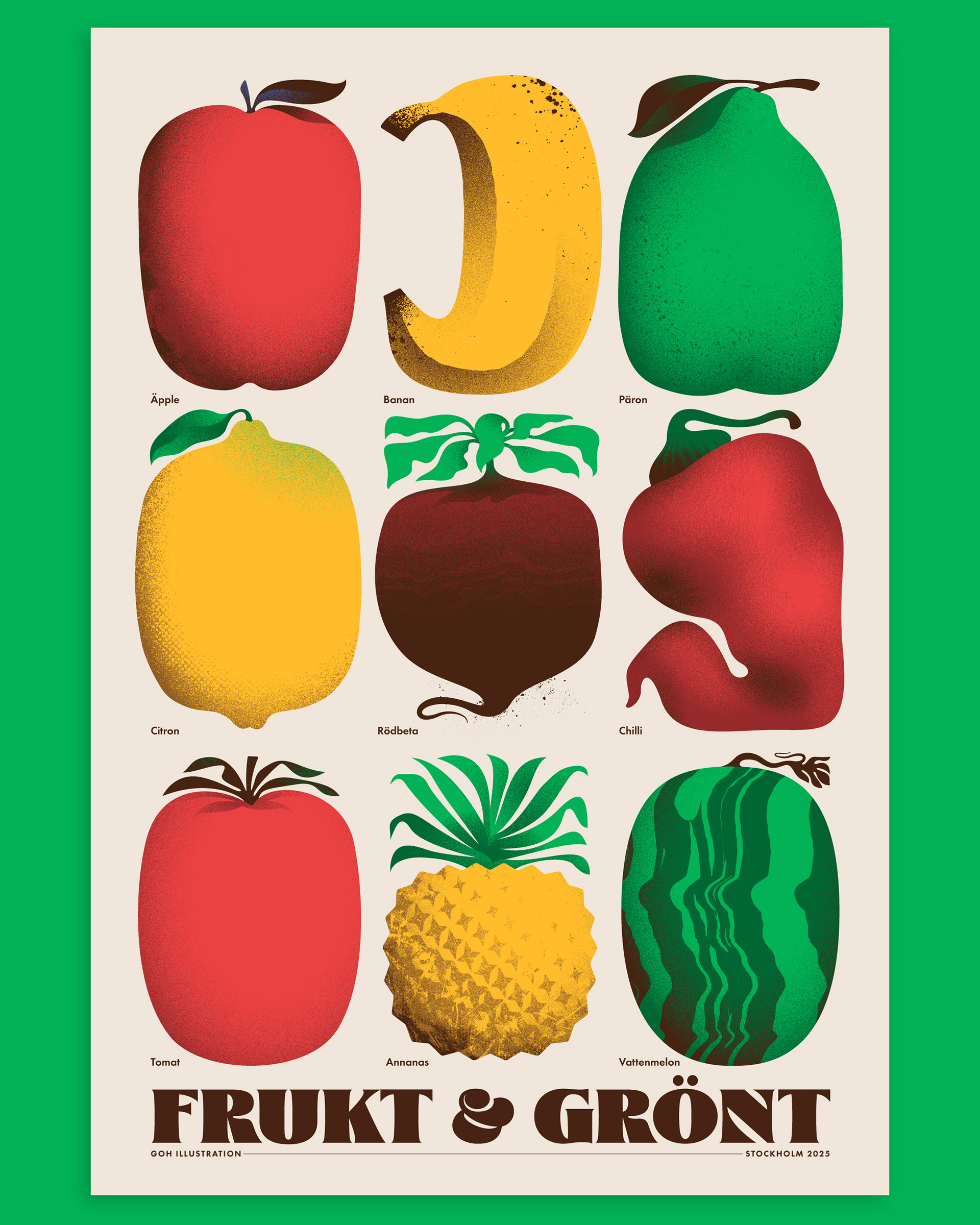 Don't forget to eat your greens! A little form experiment drawing funky fruits and veggies.