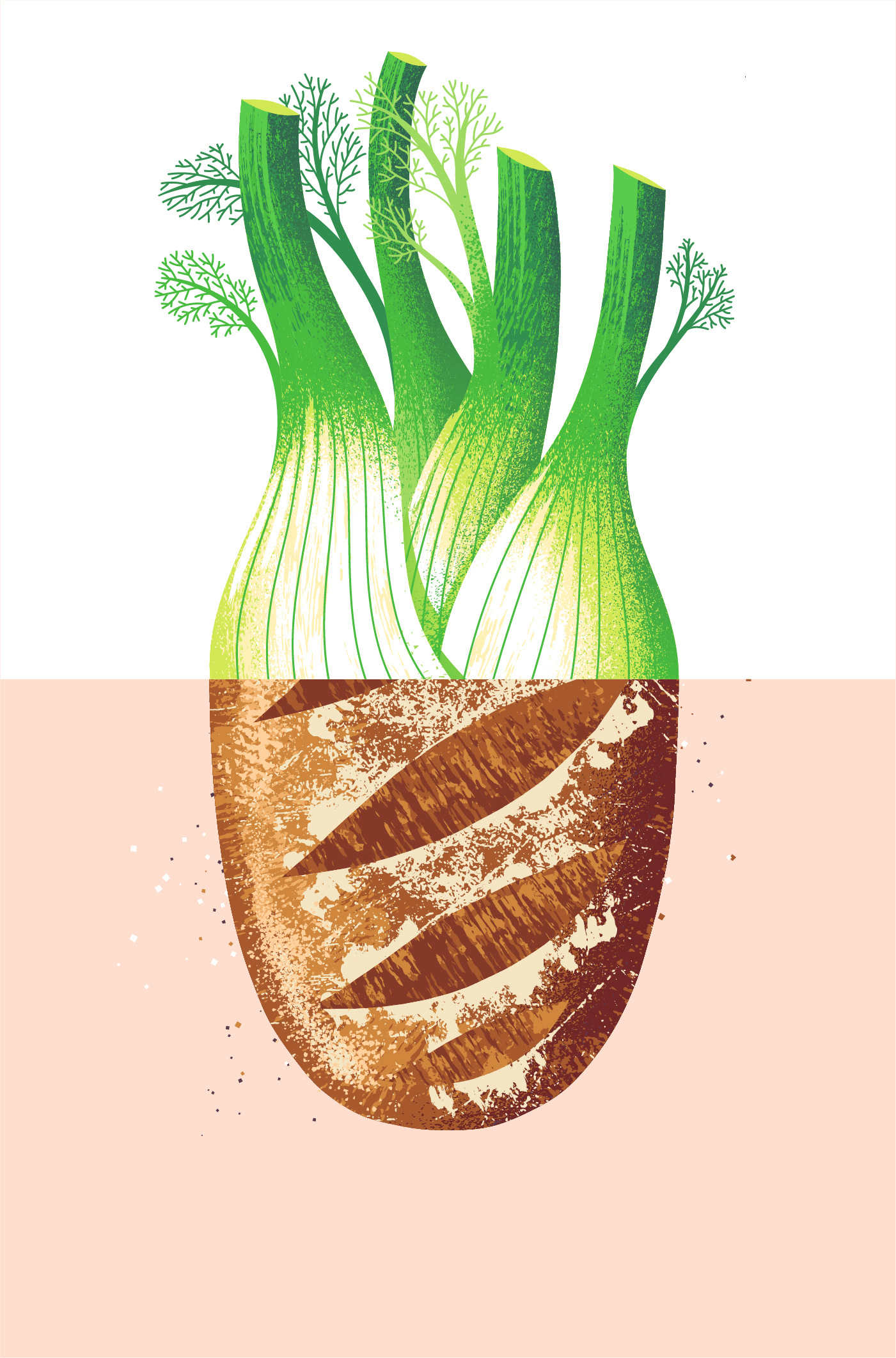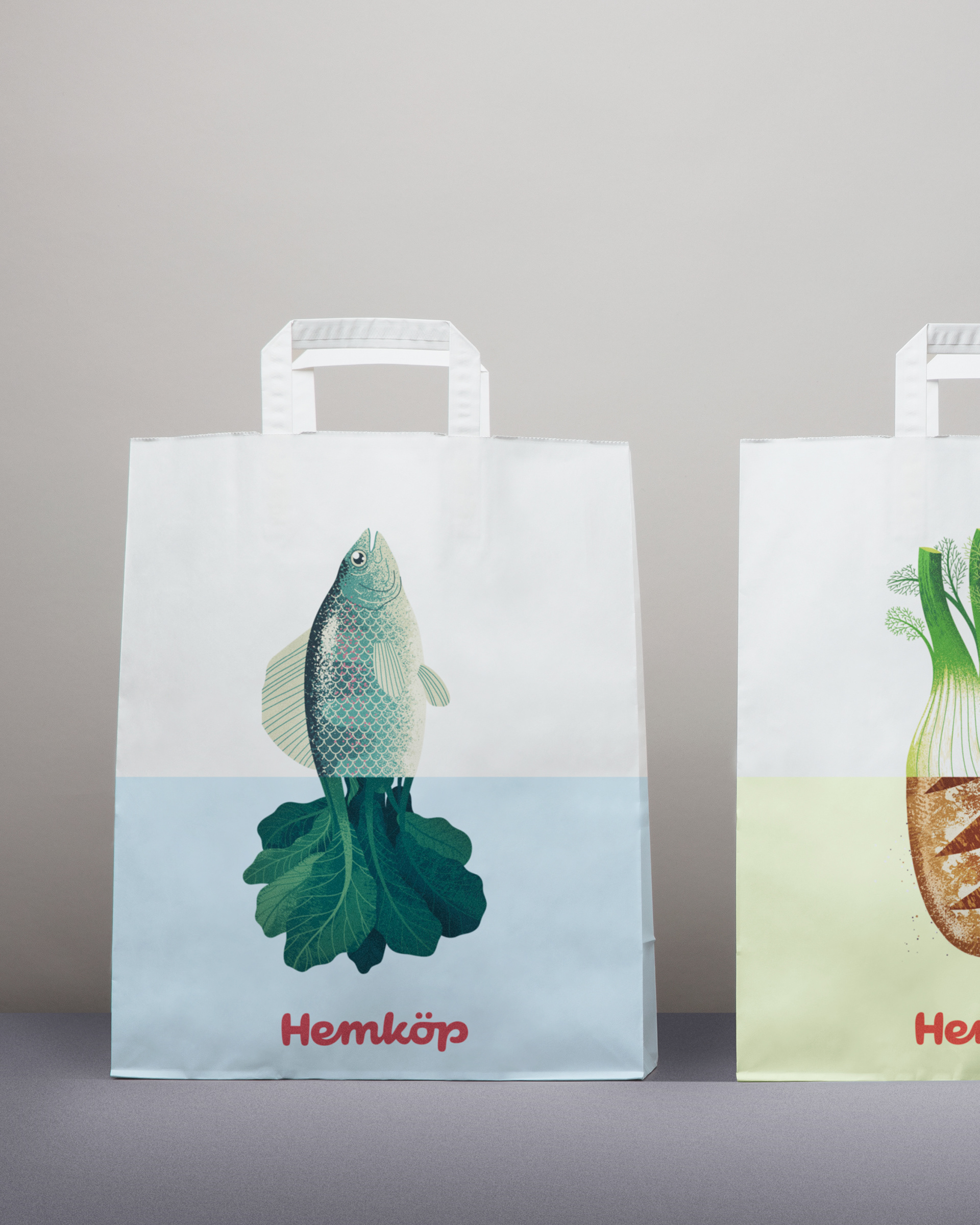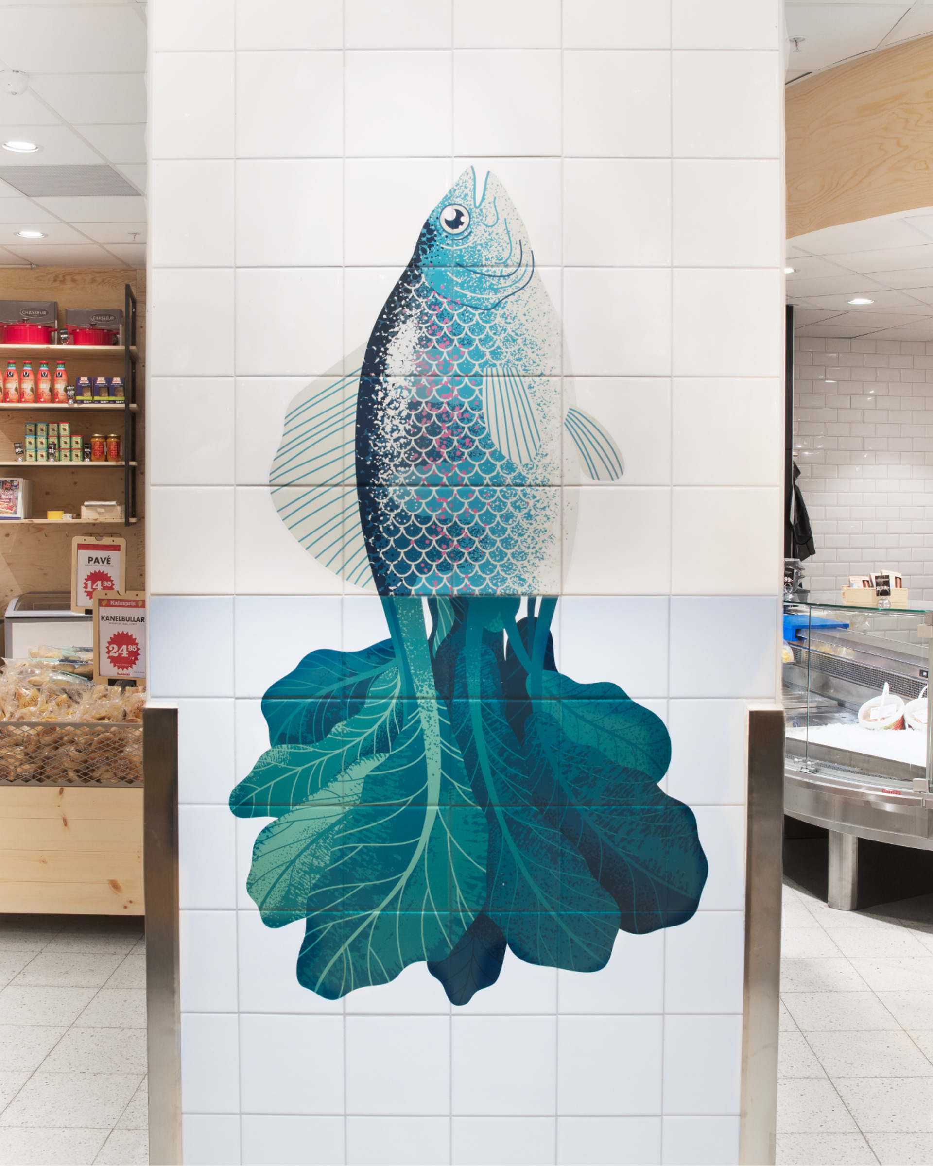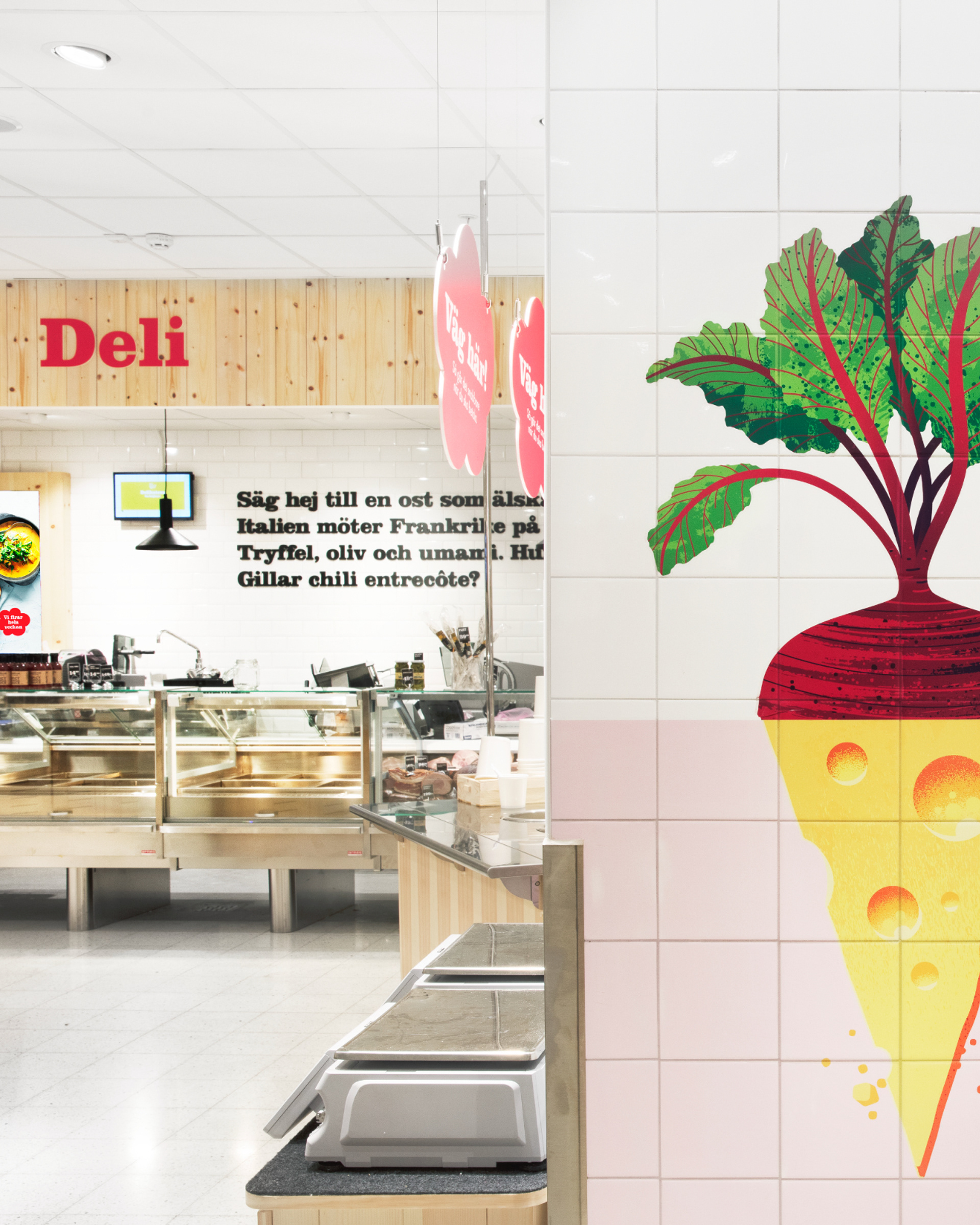 Food illustrations for Swedish grocery store Hemköp's flagship store in central Stockholm.