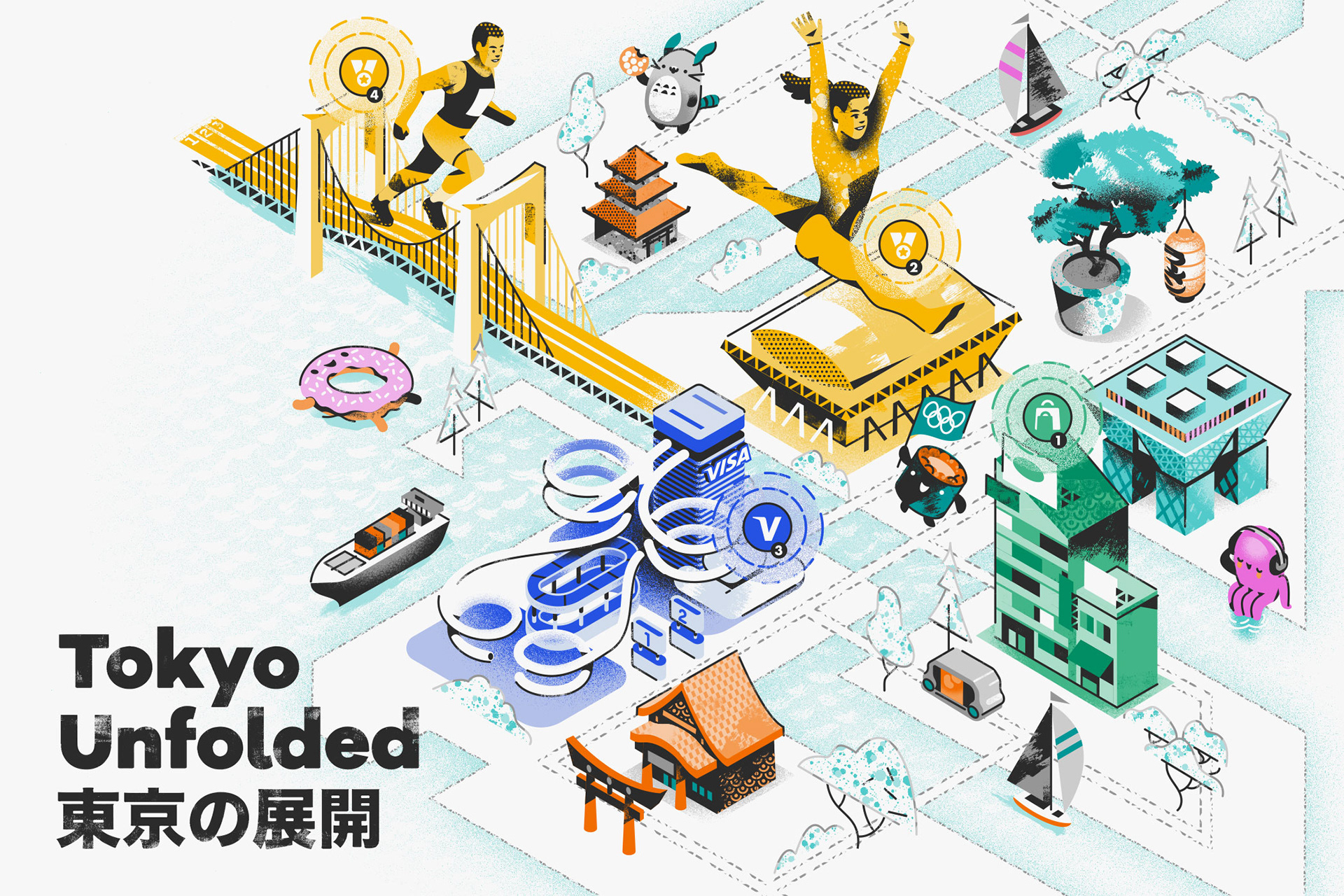 Pitch for Visa's presence at the 2020 Olympics in Tokyo. Art direction and Kawaii character designs by